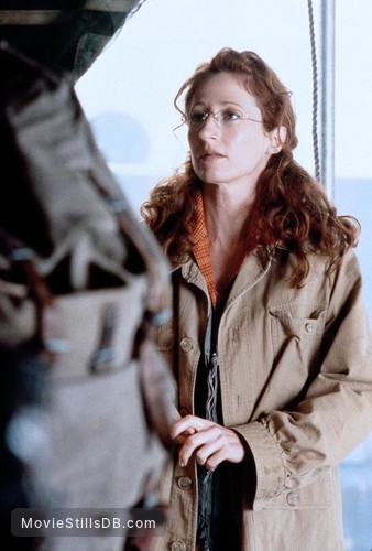 GREEN CIRCLE: News reporter Audrey Timmonds, winner of the 1999 Razzie Award for Worst Actress, takes off in an outfit seen in the movie.RED CIRCLE: Animal, the camera guy, runs away with his camera in hand, jacket and yellow shirt.
